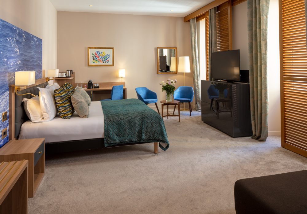 Vous trouverez dans chaque chambre Exécutive un lit double (king size) ou deux lits avec couettes et oreillers, une TV satellite écran plat LED 42’’, WiFi offert, téléphone direct, système de climatisation ou chauffage avec réglage individuel, minibar, sèche-cheveux, bureau, coffre-fort, plateau de courtoisie et machine Nespresso, peignoirs et chaussons, miroir grossissant, produits d’accueil Clarins.