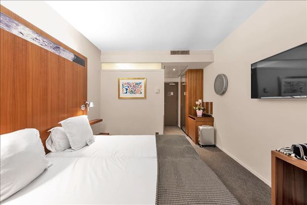 Supérieure vue patio : Combinant design contemporain et tradition niçoise, cette chambre d’une superficie de 22m² offre une atmosphère chaleureuse dans un style épuré et une vue sur le patio intérieur de l’hôtel. Situées au 3ème étage, ces chambres sont équipées de moquette et d’une baignoire.